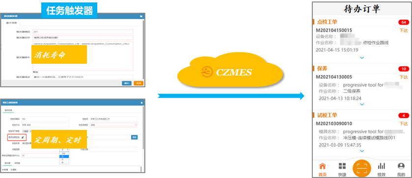 點檢、保養(yǎng)任務按照標準規(guī)范維護,模具的不同作業(yè)項可以按照不同的策略自動生成作業(yè)計劃。